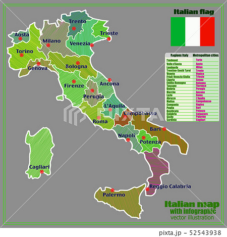 Italy map with Italian regions and infographic. Stock